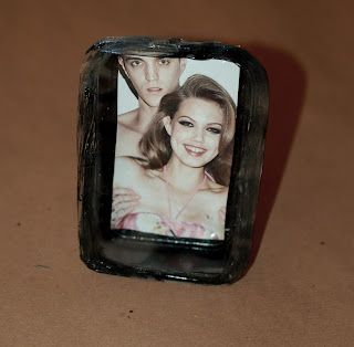 Prendete un pezzettino di calamita e la colla a caldo e incollatelo sul retro( ovviamente se decidete per questo portafoto è quasi inutile disegnare il retro, quindi vi suggerisco magari di dipingere i bordi dentro la vaschetta )