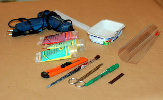 Colori, (preferibilmente degli smalti all'acqua) pennelli, taglierino, forbici, calamita, foglio di acetato trasparente,colla a caldo, colore indelebile, calamita, cordoncino e infine una vaschetta vuota di formaggio fresco spalmabile e tanta tanta fantasia :-)